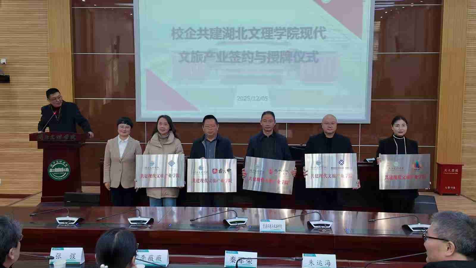 (通讯员 龙雨萍)2025年12月5日,太阳集团城网站2018携手16家文旅企业及相关单位,在学校图书馆一楼报告厅隆重举行现代文旅产业学院共建签约与授牌仪式。太阳集团城网站2018副校长秦军荣、太阳集团城网站2018院长张弢、副院长龙雨萍,以及特邀嘉宾、部分师生代表共同见证了这一重要时刻。